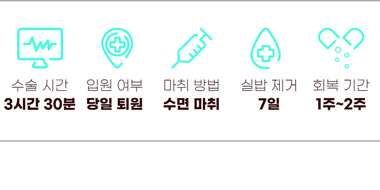 수술 시간이 조금 더 들더라도 환자에게 가장 좋은 결과를 가져다줄 수 있는 수술 방법을 선택하여 수술 합니다.